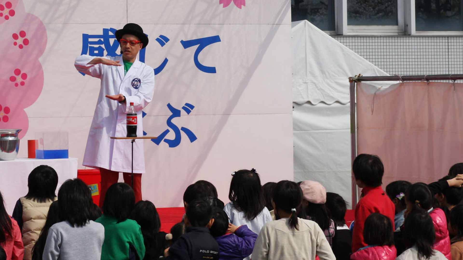リサイクルエコマジックショーや科学実験マジックのほか、ジャグリングパフォーマンスやマジックショー、ロープパフォーマンス、獅子舞&和風曲芸など