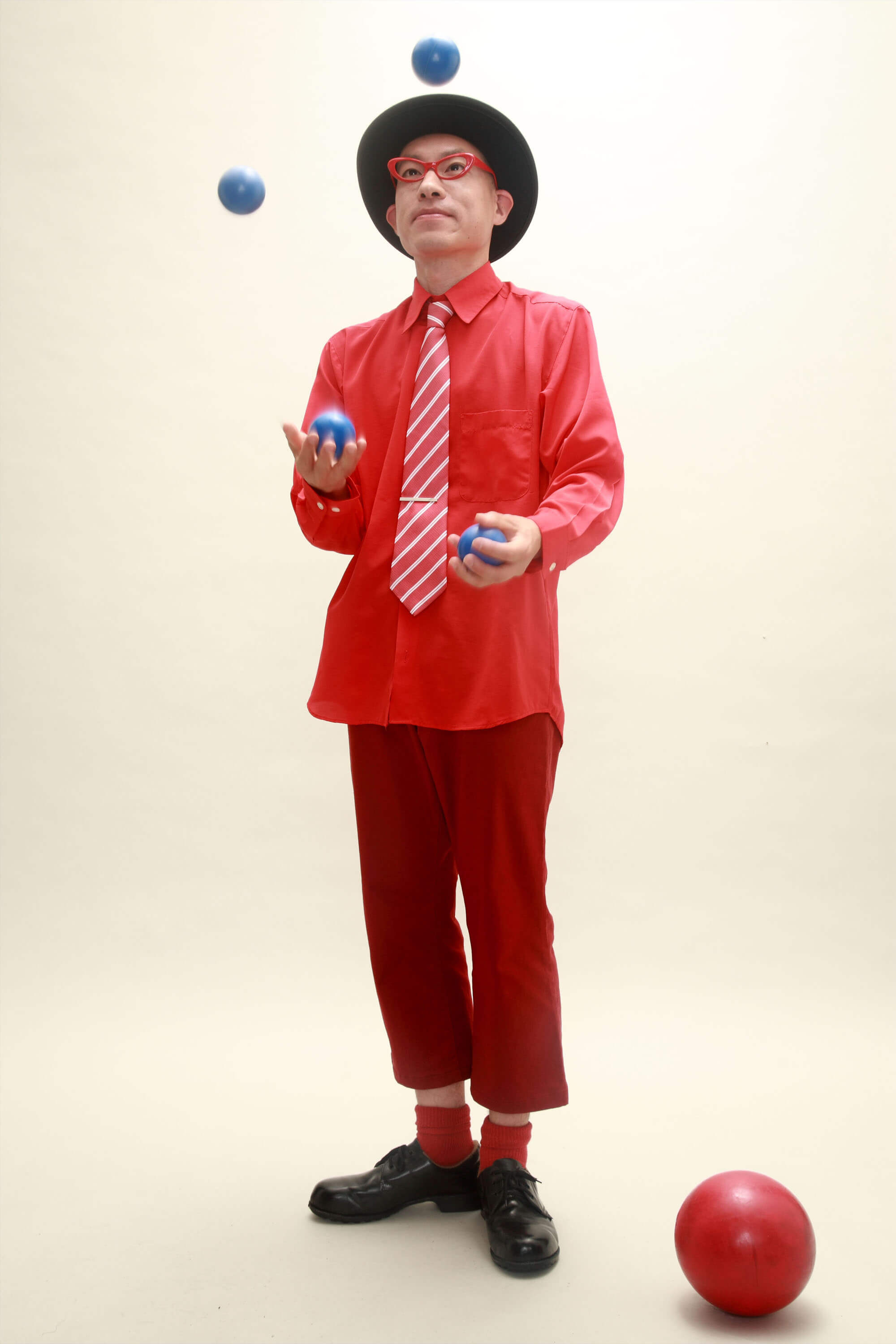 ☆ジャグリングショージャグリングを独自の観点でアレンジ!お客さんの「笑い」を常に意識したショーです。<パフォーマンス> ほうきのデビルスティック・3~5ボールルーティング・爆笑ローラーバランス・ディアボロ ハットジャグリング・シガーボックス・マジックバルーン オリジナル!トイレのすっぽん(正式名ラバーカップ)を使った輪投げ ※↓画像をクリックして頂くと大きな画像がご覧いただけます。 |