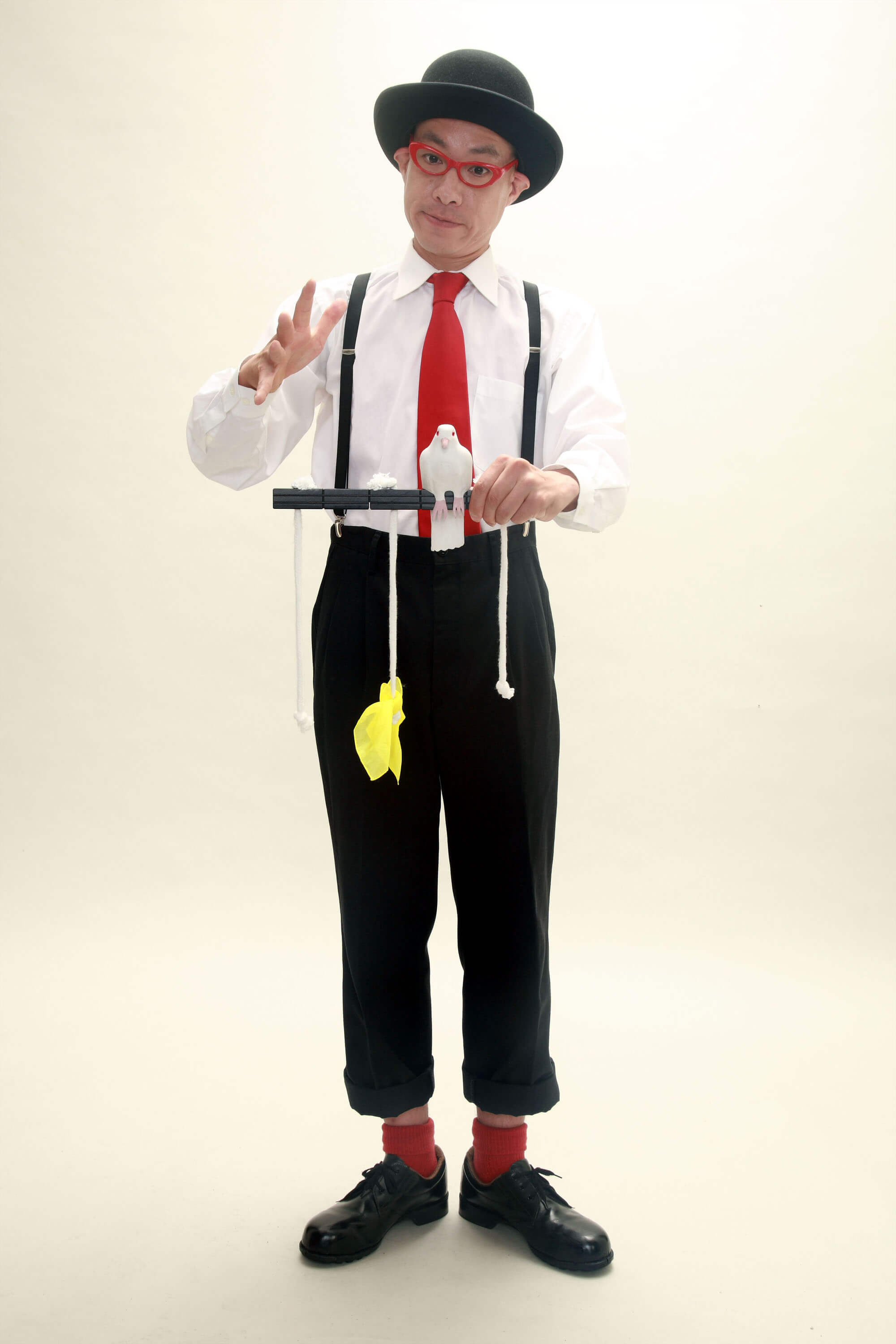 ☆ジャグリング&マジックショージャグリングとマジックを合わせたボードビルショー<パフォーマンス> ○ジャグリング ハットトリック・ディアボロ・デビルスティック・ボールルーティング・シガーボックス ローラーバランス・マジックバルーン ○マジック カード・ハンカチ・鳩(おもちゃ)・ロープ・ダイス・メンタル・プロダクション・たまご・グラス ※↓画像をクリックして頂くと大きな画像がご覧いただけます。 |